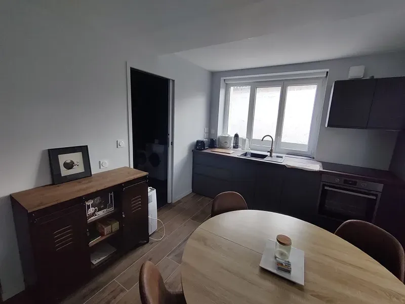 - Création d’un espace buanderie intégré avec machine à laver, rangements, et surface pour plier le linge